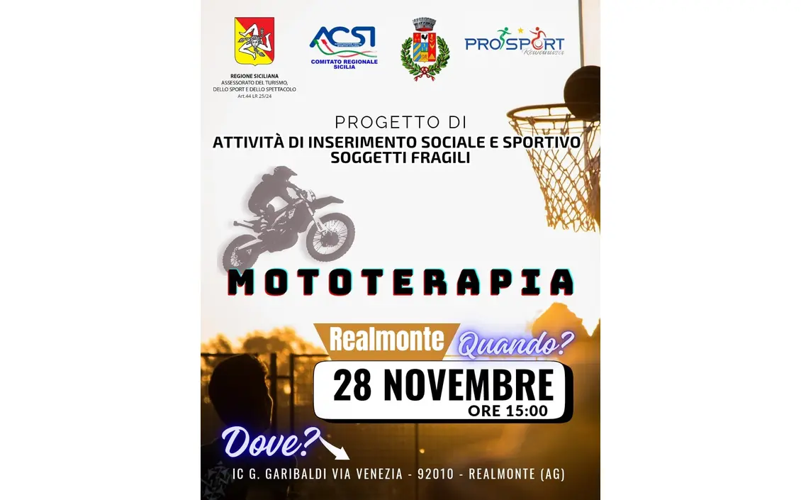 Mototerapia in collaborazione con MotorLife presso IC G. Garibaldi in Via Venezia a Realmonte (AG). Progetto promosso da PROSPORT, ACSI, Città di Realmonte e Regione Siciliana